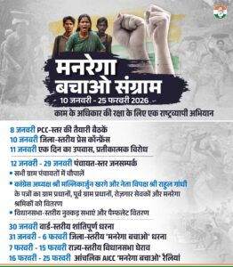 कांग्रेस ने यह आंदोलन केंद्र सरकार द्वारा प्रस्तावित ‘विकसित भारत–जी राम जी अधिनियम’ के विरोध में शुरू करने का ऐलान किया है। पार्टी का आरोप है कि यह नया कानून ग्रामीण रोजगार, मजदूरी सुरक्षा और आजीविका पर सीधा हमला है।